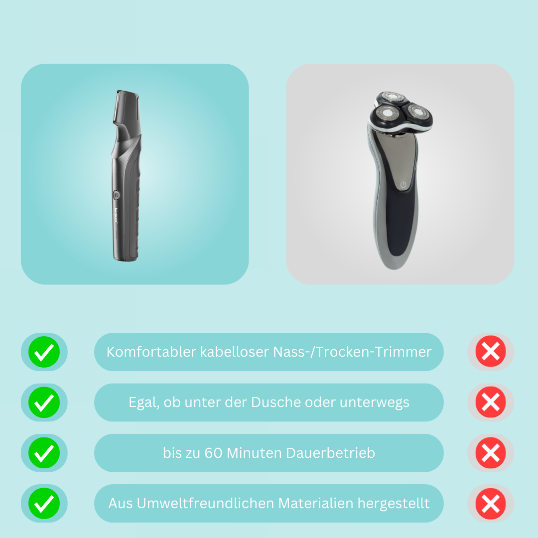 Du verdienst es, dich in deiner Haut wirklich wohlzufühlen – jeden Tag. Keine juckenden Hautirritationen mehr, die deine Stimmung ruinieren. Keine peinlichen Momente, weil du die schwierigen Stellen einfach nicht erreichen konntest. Mit jeder Rasur geht es nicht nur um Haare, es geht um dein Selbstbewusstsein, um dein Gefühl von Komfort und Kontrolle über deinen Körper.
