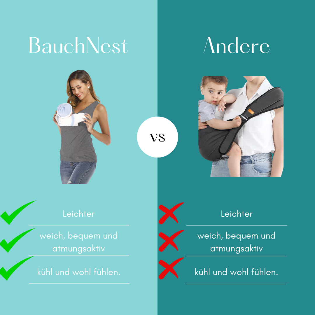 Du willst für dein Baby da sein, ihm die Nähe geben, die es braucht, und trotzdem deinen Alltag irgendwie meistern. Aber was bekommst du? Statt inniger Kuschelmomente nur Stress. Jeden Tag dieser Spagat zwischen Geborgenheit und all den Anforderungen, die das Leben mit einem Neugeborenen mit sich bringt. Die kostbare Zeit, die du eigentlich genießen willst, wird von Hektik überschattet – und dein Baby? Spürt diese Unruhe. Hier kommt das BauchNest ins Spiel. Ein Shirt, das dir und deinem Baby genau das gibt, was ihr beide braucht